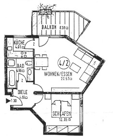 Schlafzimmer, Wohnzimmer mit großem süd/west Balkon